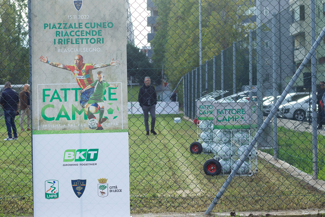 L’evento di inaugurazione del campo si è aperto con i saluti del Sindaco Carlo Salvemini e l’intervento da parte dell’Assessore allo Sport Paolo Foresio. A seguire l’Amministratore Delegato di BKT Europe Lucia Salmaso che ha espresso il proprio orgoglio per la realizzazione del nuovo campo. E ancora il Vicepresidente dell’U.S. Lecce Dott. Corrado Liguori e Carlo Longhi della Lega Nazionale Professionisti B che ha collaborato a stretto contatto con BKT, con cui condivide due valori fondamentali quali l’attenzione ai territori e ai numerosi tifosi. In chiusura Edoardo Alzetta, Head of Sports di Havas Media Group in Italia e responsabile di HSE, il team di sport marketing del Gruppo che ha ideato il progetto. Ospite d’eccezione l’amatissimo beniamino del calcio leccese Ernesto Chevanton, il campione uruguagio oggi tecnico del settore giovanile dell’US Lecce.