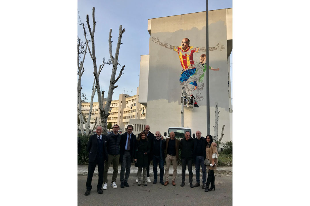 Ernesto Chevanton ha fatto da arbitro speciale, oltre che da emozionato ambassador e ha anche visto dare il via ai lavori di un murales simbolico, che apparirà̀ sulla facciata di un caseggiato nei pressi del campo e raffigurerà̀ appunto la leggenda giallorossa insieme a un bambino.