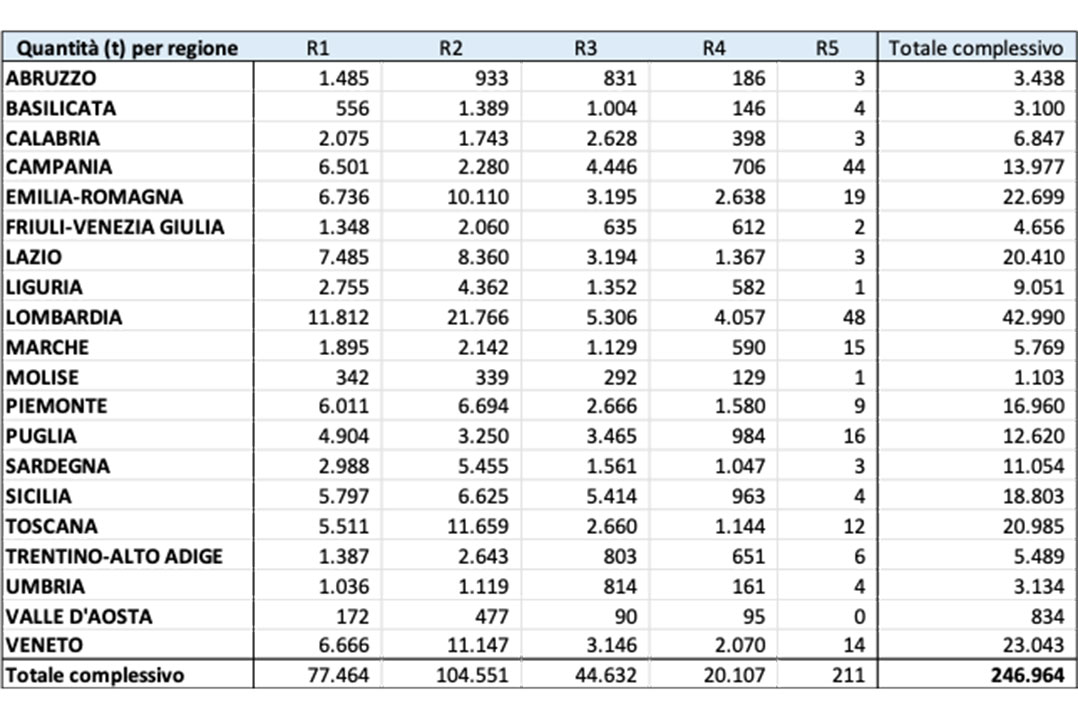 Nella tabella di seguito sono riportate le quantità di RAEE Domestici gestite da Erion WEEE in ciascuna regione italiana.