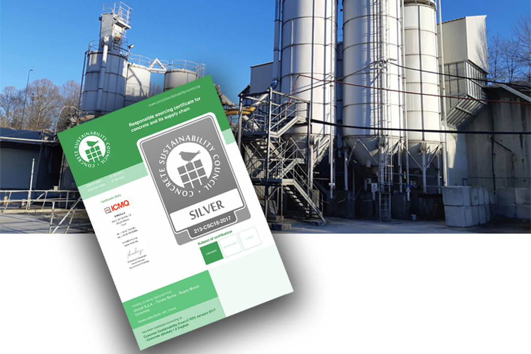 Per la prima volta in Italia è stata rilasciata una certificazione secondo il Concrete Responsible Sourcing Scheme, sulla base del CSC Manual Version 1.0 del 18.12.2017, integrato con i requisiti addizionali definiti da Federbeton, in qualità di Regional operator del CSC in Italia