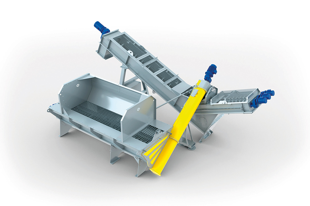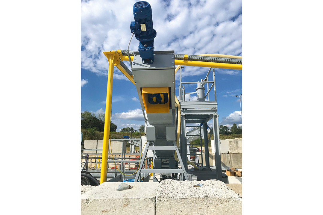 1. “Consep®” per il recupero della frazione inerte presente nel calcestruzzo di risulta (Figura 1). Il processo, tramite un sistema meccanico dotato di buffer e coclee alimentatrici, permette di recuperare aggregati fini (sabbia) con diametro delle particelle inferiore a 5 mm e aggregati grossolani (ghiaia) con diametro delle particelle superiore a 5 mm. Inoltre, durante la fase di separazione e vagliatura, ciascuna frazione granulometrica viene perfettamente lavata tramite un sistema di ugelli spruzzatori.