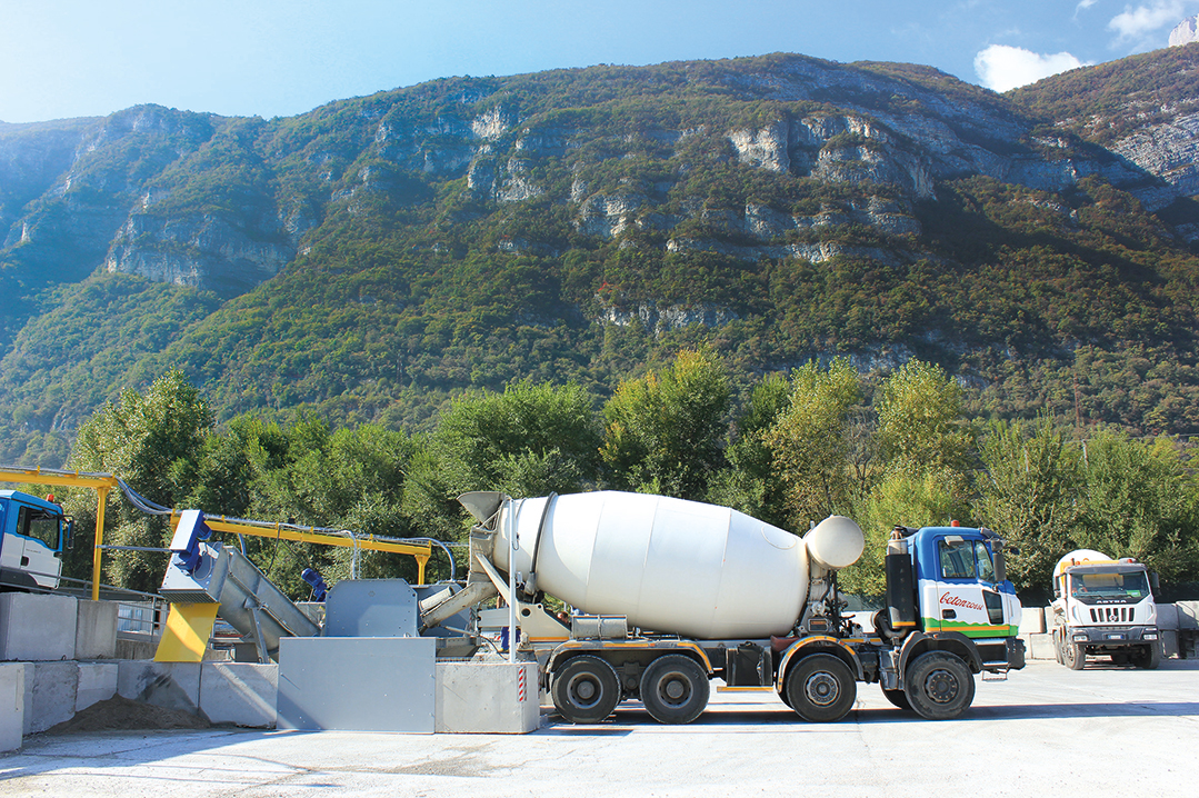 per il trattamento dell’acqua di lavaggio (acqua + cemento) e conseguente recupero di acqua chiarificata e fango di cemento (Figura 2).