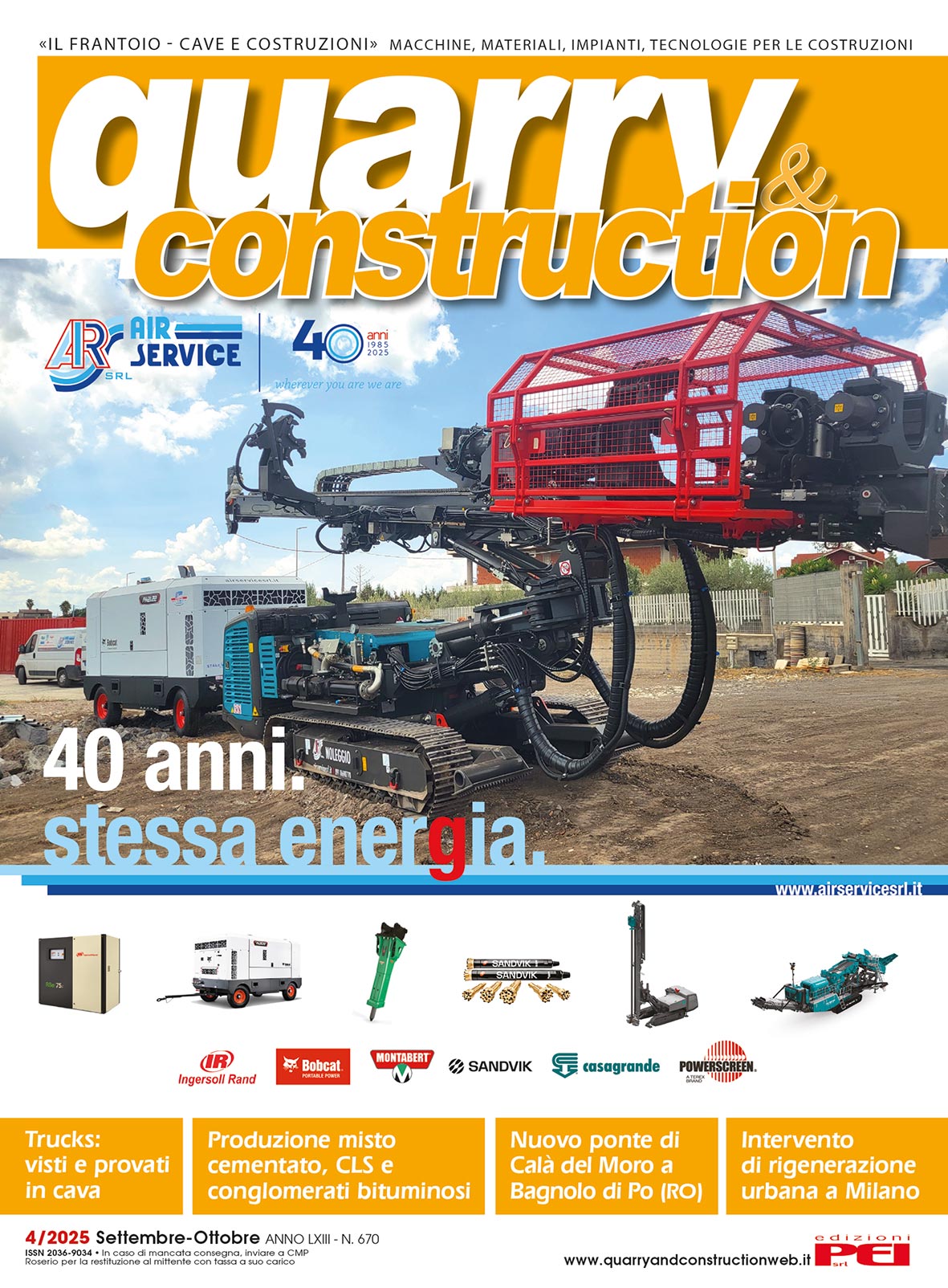 Quarry and Construction è la rivista tecnica che si rivolge dal 1962 a tutti gli operatori del mondo dell’escavazione, della frantumazione e del movimento terra, alle imprese di costruzioni, edili e stradali, alle grandi committenze pubbliche e private, agli uffici tecnici di enti pubblici centrali e periferici. La collaborazione con le più importanti associazioni scientifiche (Anim e Università), imprenditoriali (Anepla e Federcave) ed espositive (le più quotate fiere italiane e internazionali) garantisce un completo e tempestivo aggiornamento di quanto avviene nel settore.